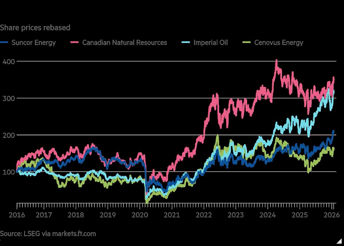 Shares of major Canadian oil companies like Suncor Energy, Canadian Natural Resources, Imperial Oil, and Cenovus are nearing decade highs. These firms recently announced ambitious plans to invest a combined $19.5 billion this year, targeting higher output despite volatile global conditions.
